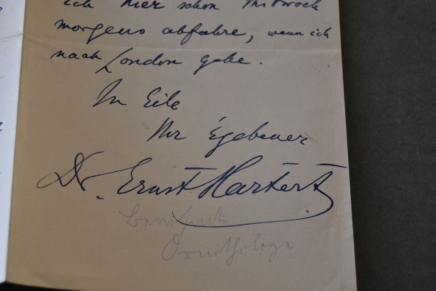 Beschreibung Handschriftlicher, 2-seitiger Brief. Gedruckter Briefkopf des Zoological Museum Tring, Herts, England. Hartert bittet um die Möglichkeit eines persönlichen Kennenlernens in London.