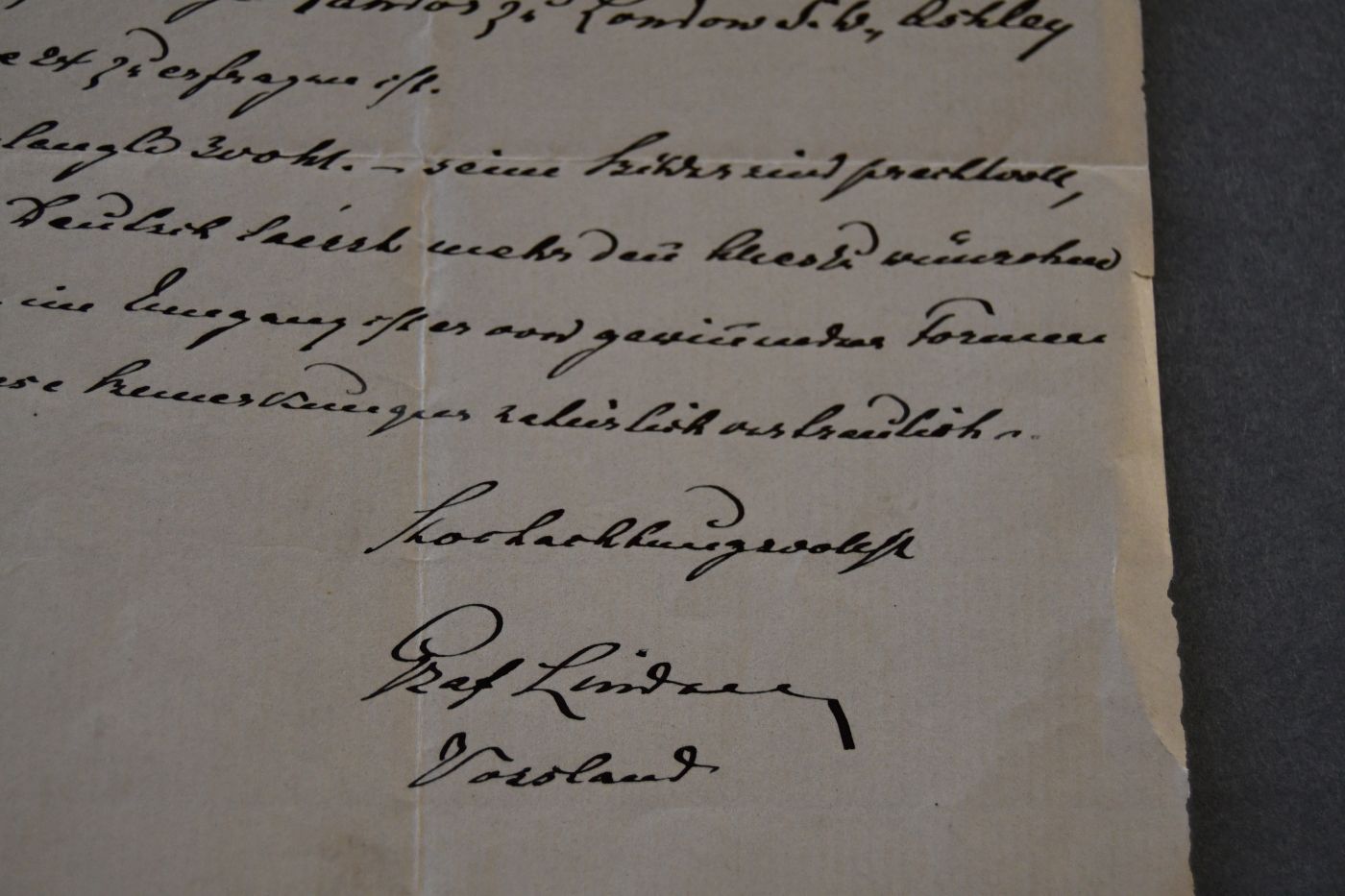 Beschreibung 1-seitiger handschriftlicher Brief. Durchgehende Längs- und Querfalze, Einrisse. Gedruckter Briefkopf des Württembergischen Vereins für Handelsgeographie. Von Linden gibt vertrauliche Auskünfte zu Henry Savage Landor (dem britischen Maler und Reiseschriftsteller): "... seine Bilder sind prachtvoll, sein Deutsch lässt mehr denn Alles zu wünschen übrig, im Umgang offen und von gewinnenden Formen ..."