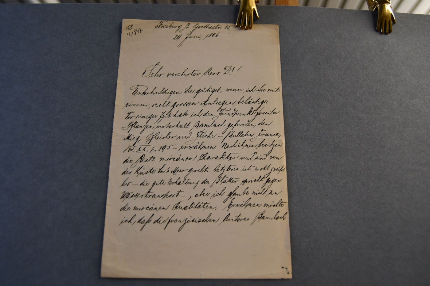 Schreiben des deutschen Geologen und Paläontologen Georg Boehm (1854-1913) vom 29. Juni 1896 an den Danziger Lehrer und Botaniker Konrad Lakowitz (1859-1945).