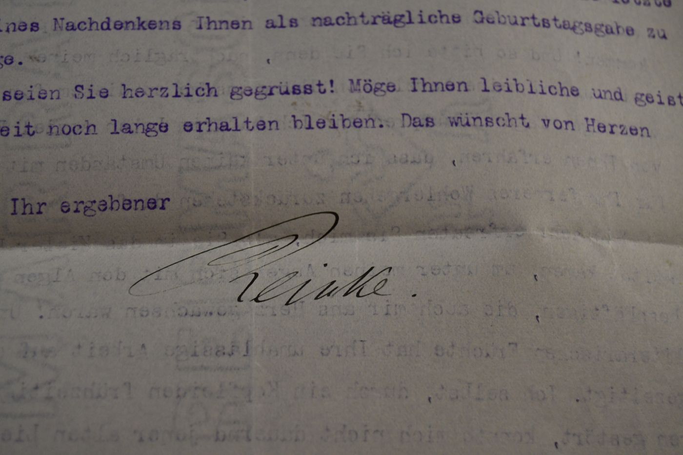 Maschinenschriftlicher Brief des deutschen Botanikers Johannes Reinke (1849-1931) an den Danziger Lehrer und Botaniker Konrad Lakowitz (1859-1945) vom 20. August 1929. Beigegeben eine handschriftliche Postkarte von Johannes Reinke an Konrad Lakowitz vom 14.10.1929.