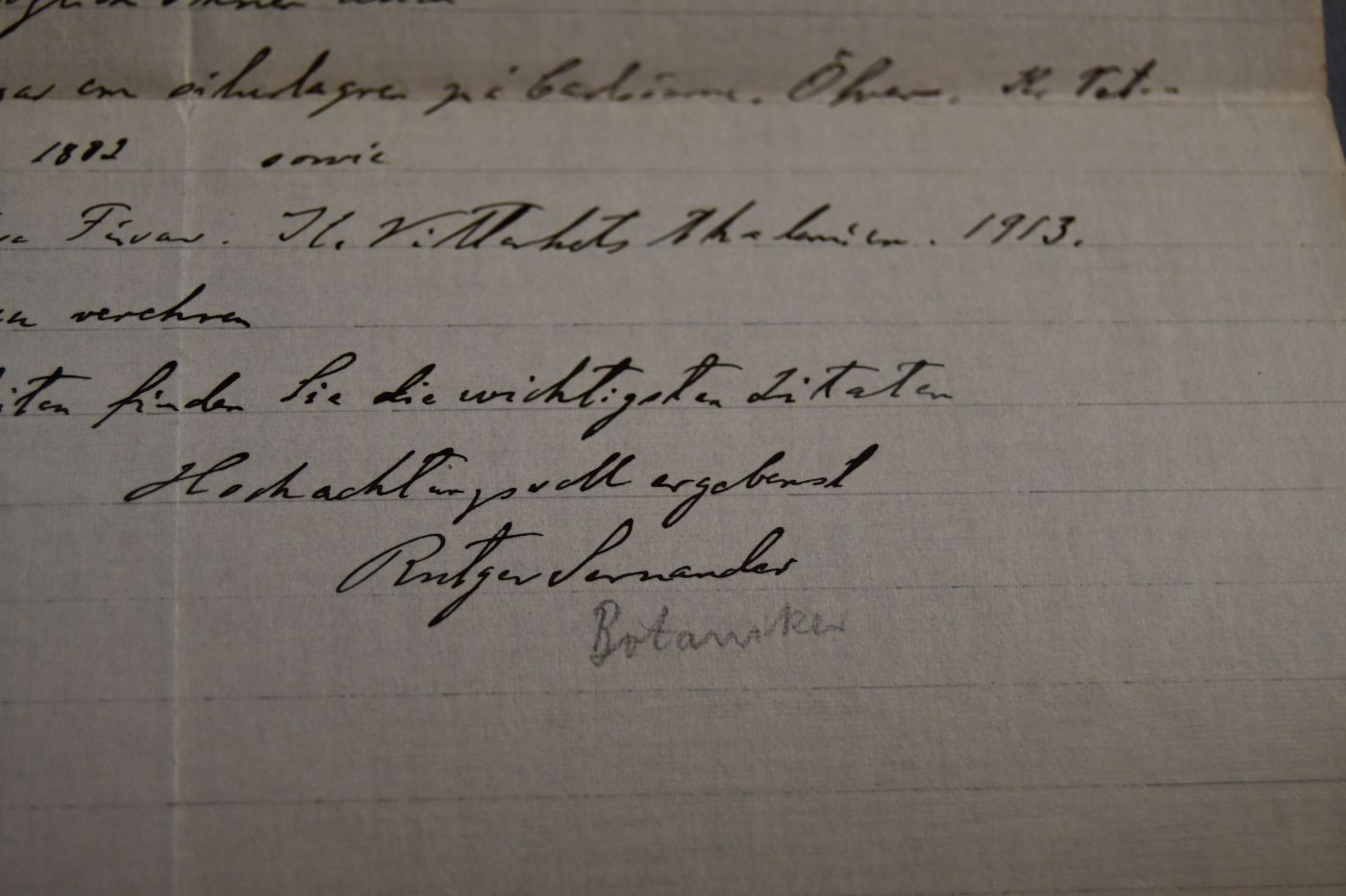 Brief des schwedischen Botanikers, Geologen und Archäobotanikers Rutger Sernander (1866-1944) an den Danziger Lehrer und Botaniker Konrad Lakowitz (1859-1945) vom 5. August 1926.