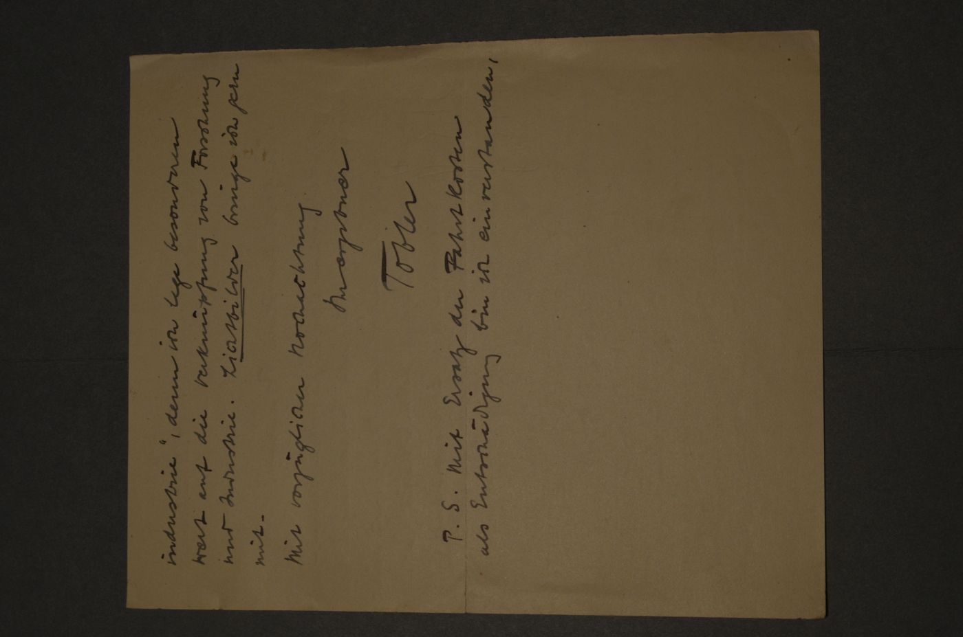 Beschreibung 1 1/2-seitiger Brief mit dem Briefkopf des Forschungs-Instituts für Bastfasern. Durchgehender Querfalz und Randeinrisse. Friedrich Tobler bespricht das Nähere über einen Vortrag (Fortschritte der Bastfaserforschung und Bastfaserindustrie).