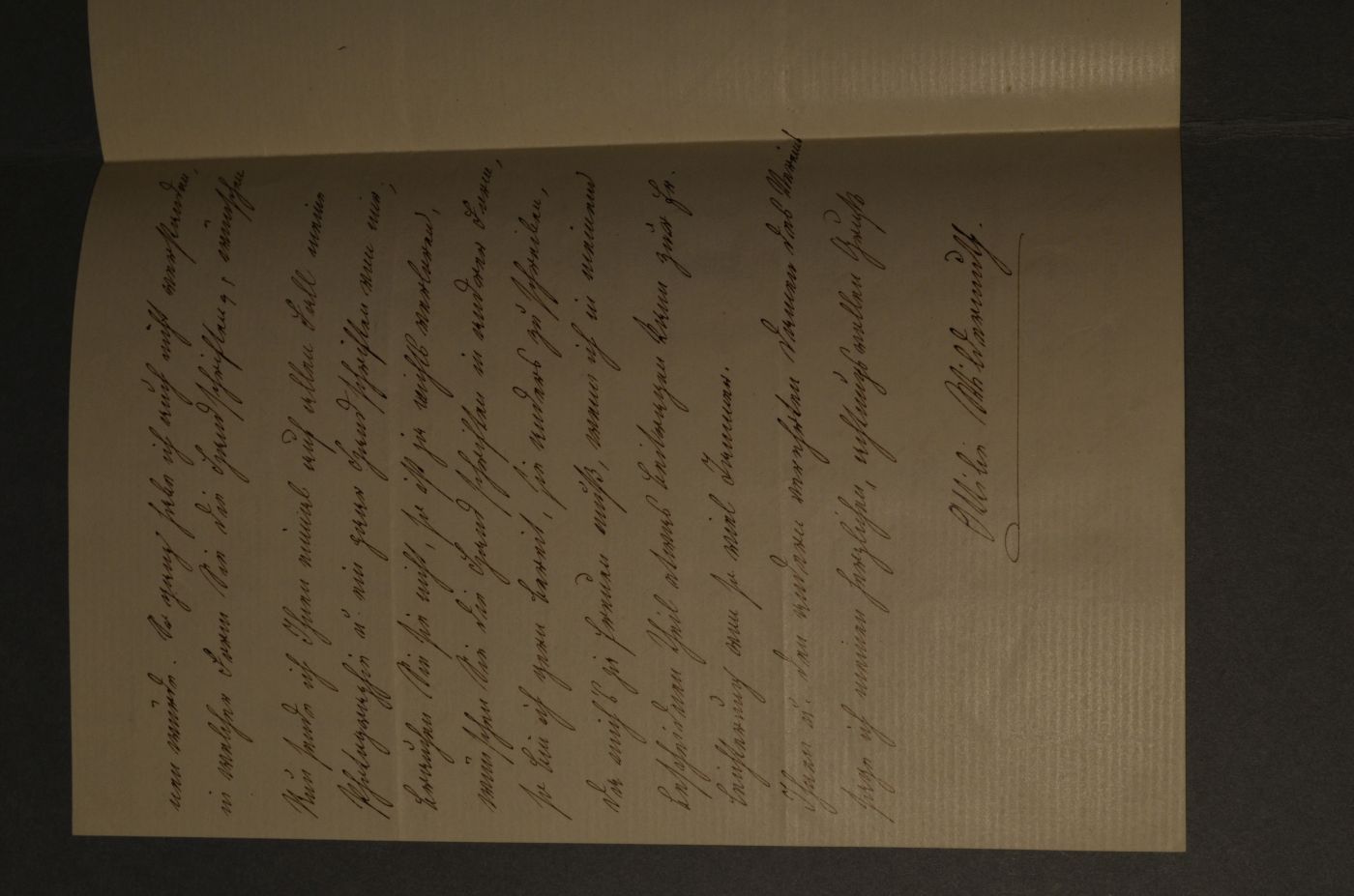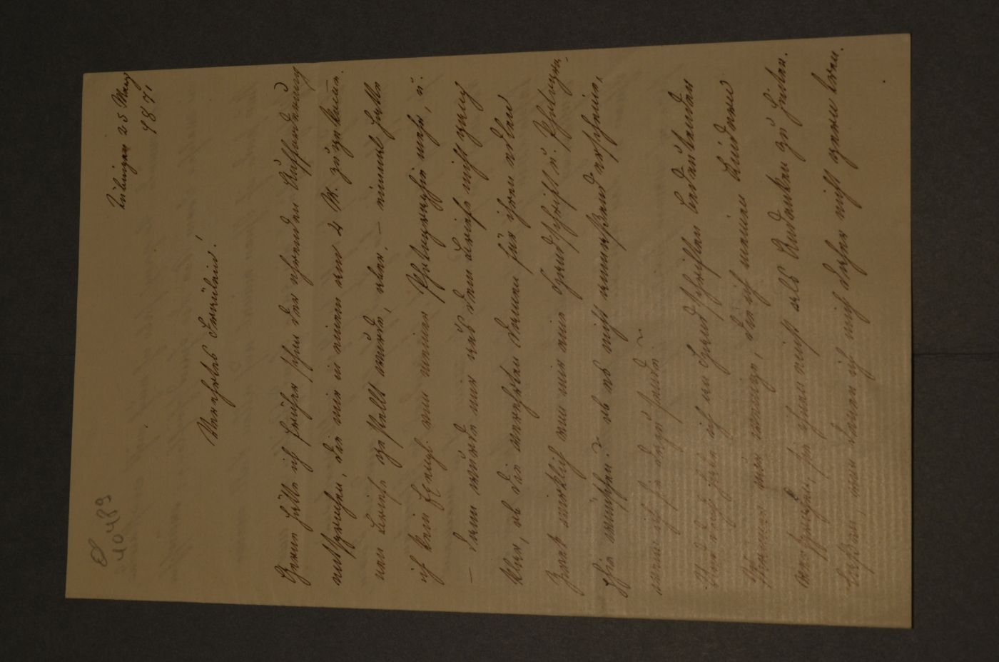 Beschreibung Eigenhändiger 2-seitiger Brief mit durchgehenden Querfalzen. Ottilie Wildermuth schreibt auf einen Bittbrief eines unbekannten Vereines: "... Und doch habe ich von Handschriften bedeutender Männer nur wenige, die ich meinen Kindern versprochen, sie ihnen nicht als Andenken zu hinterlaßen, von denen ich mich daher nicht gerne trennen würde. ... Nun sende ich Ihnen einmal auf allen Fall meine Photographie u. ein paar Handschriften von mir. Brauchen Sie sie nicht, so ist ja nichts verloren, wünschen Sie die Handschriften in anderer Form, so bin ich gern bereit, sie anders zu schreiben, da mich`s ja freuen muß, wenn ich in meinen bescheidenen Theil etwas beitragen kann zur Erleichterung von so viel Jammer."