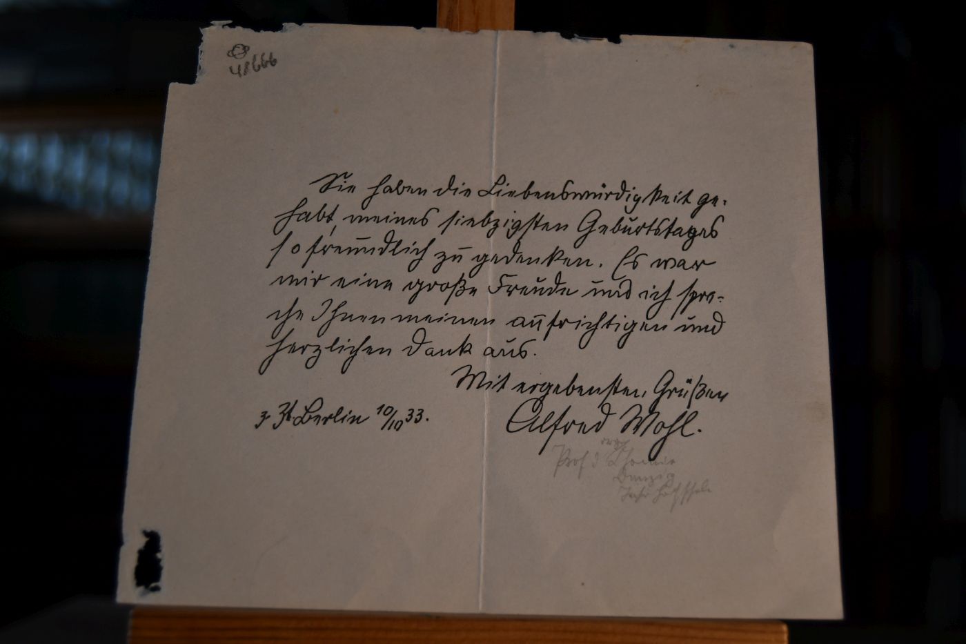 Handschriftlicher Brief des Danziger Chemieprofessors Alfred Wohl (1863-1939) vom 10. Oktober 1933.