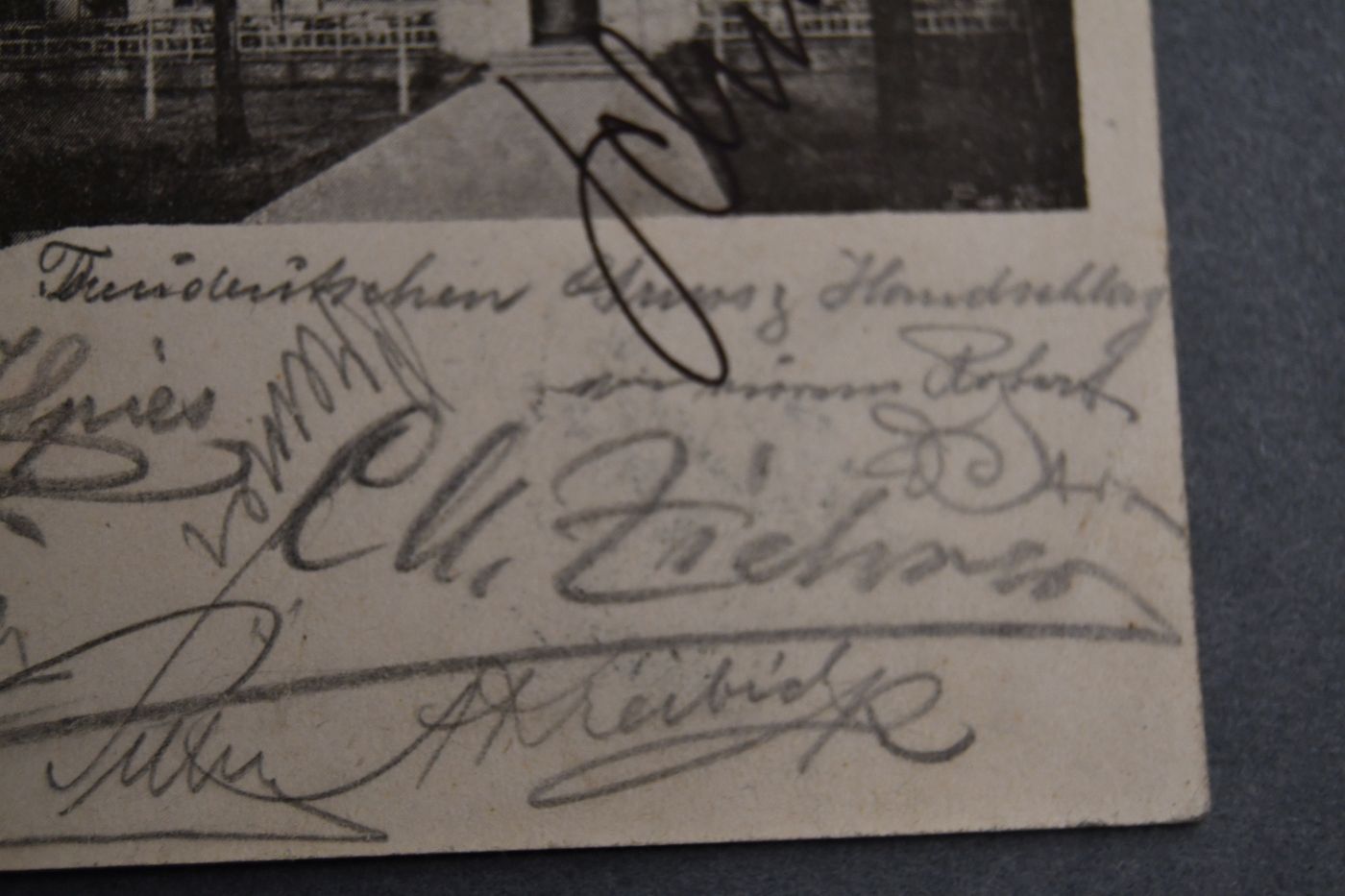 Gelaufene Bildpostkarte des Wiener Volksgartens auf der rund 20 Personen mit Bleistift unterschrieben haben, darunter auch der Komponist Carl Michael Ziehrer (1843-1922) vom 21. Dezember 1899.
