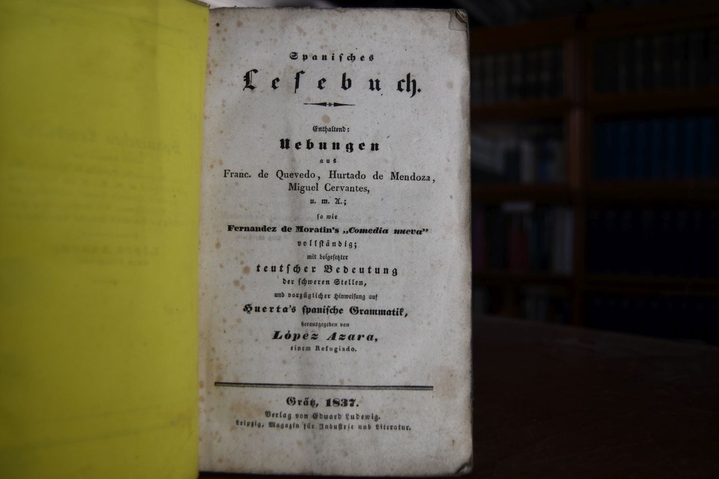Spanisches Lesebuch. Enthaltend Uebungen aus Franc. de Quevedo, Hustado de Mendoza, Miguel Cervantes, u.m.A; so wie Fernandez de Moratin`s "Comedia nueva" vollständig; mit beigesetzter teutscher Bedeutung der schweren Stellen, und vorzüglicher Hinweisung auf Huerta`s spanische Grammatik.