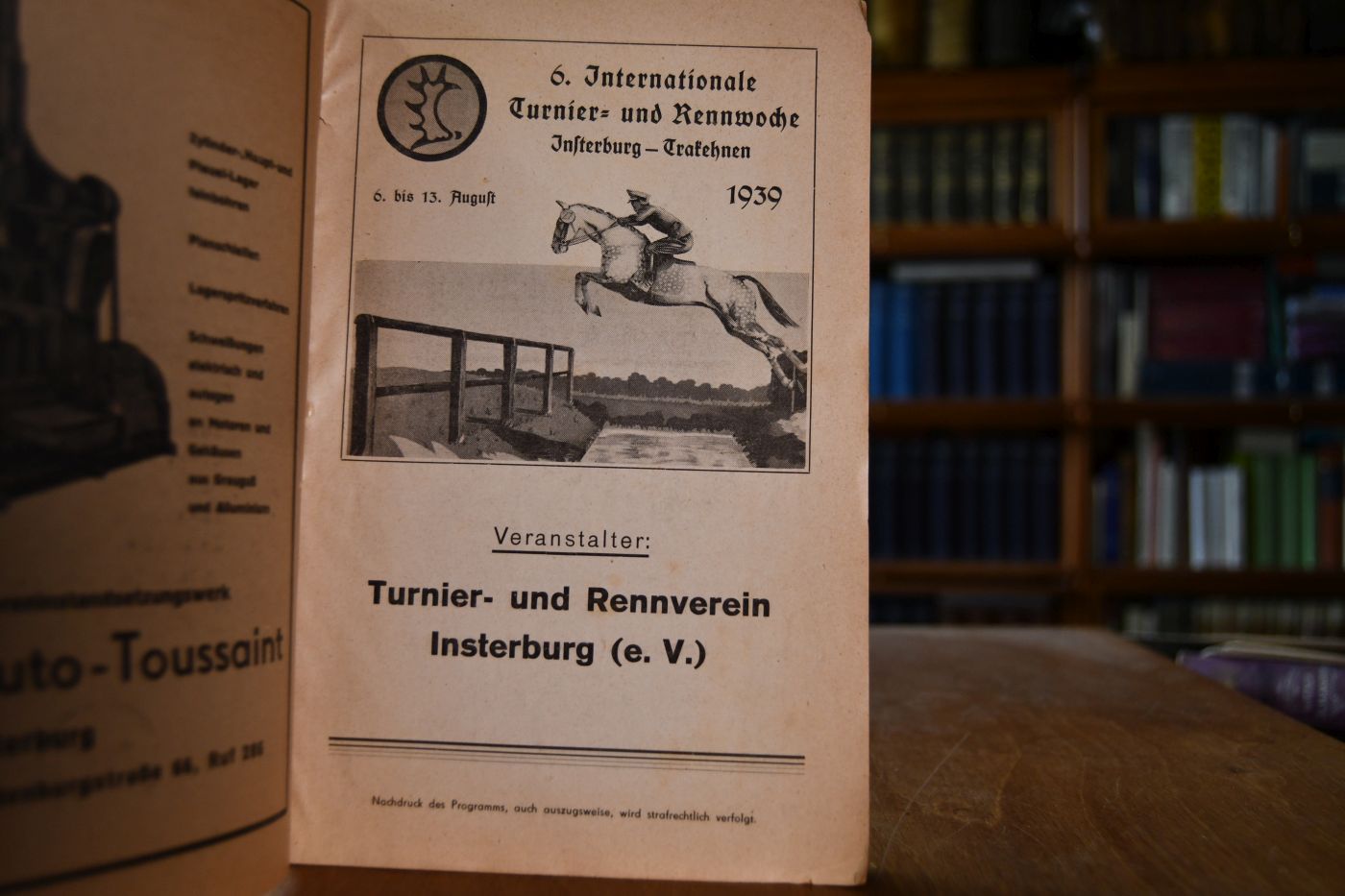 6. Internationale Turnier- und Rennwoche Insterburg - Trakehnen 6. bis 13. August 1939.