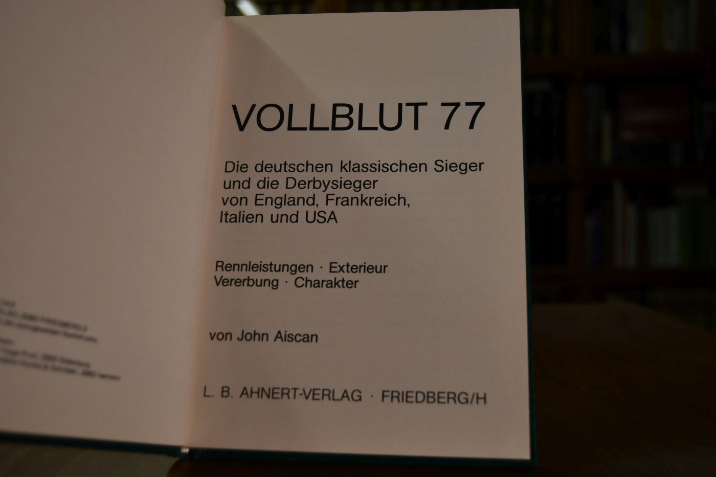 Vollblut 77. Die deutschen klassischen Sieger und die Derbysieger von England, Frankreich, Italien und USA. Rennleistungen, Exterieur, Vererbung, Charakter.