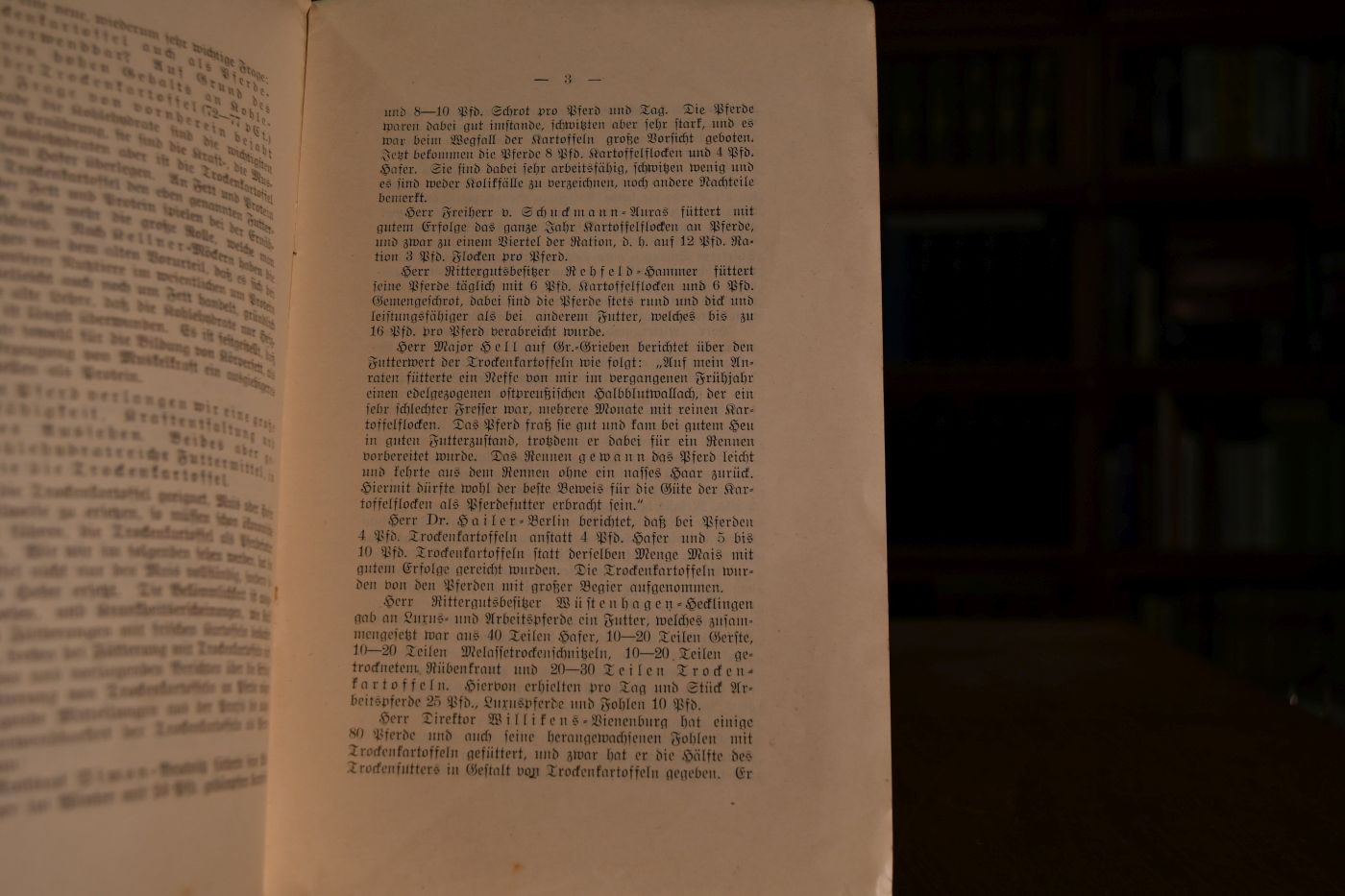 Bericht über die Erfolge der Fütterungsversuche mit Trockenkartoffeln als Pferdefutter.