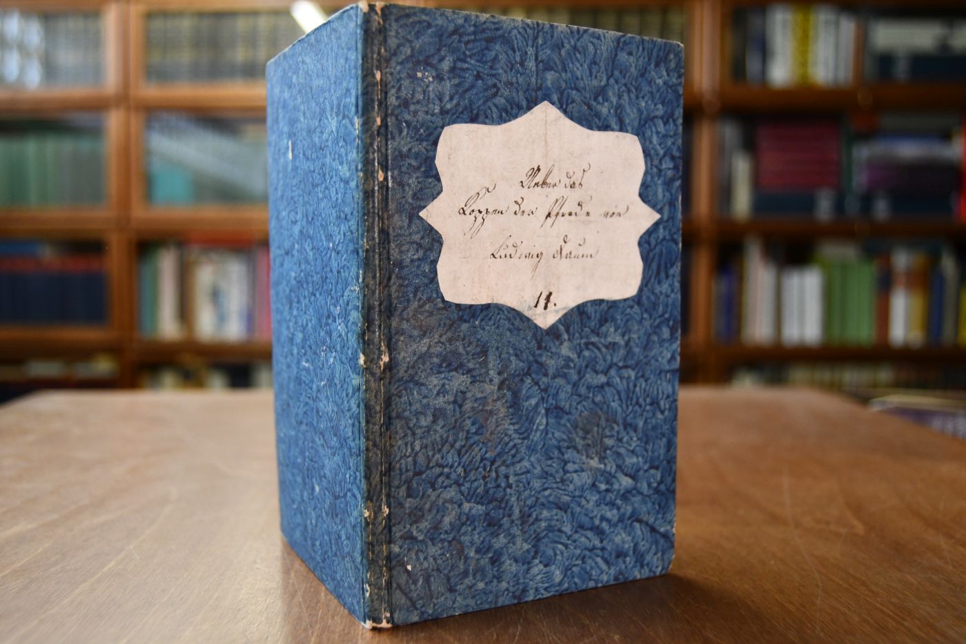 Format 17 x 11 cm, Pappband der Zeit mit handschriftlichem Titel und umlaufenden Sprengschnitt