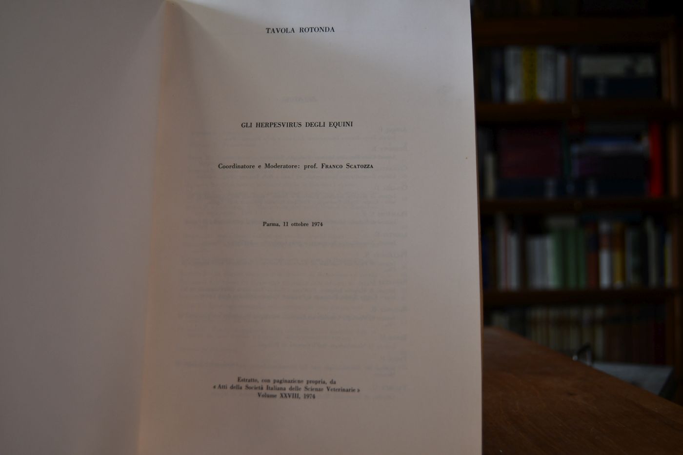 Estratto, con paginazione propria, da e Atti della Societa Italiana della Scienze Veterinarie, Volume XXVIII, 1974