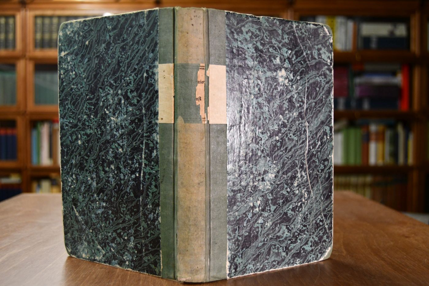 Beschreibung Einband berieben und bestoßen. Rückenschild fehlt weitgehend. Handschriftliches Exlibris auf Innendeckel. Titelseite knapp zur Hälfte mit Verlust. Durchgehend fleckig.