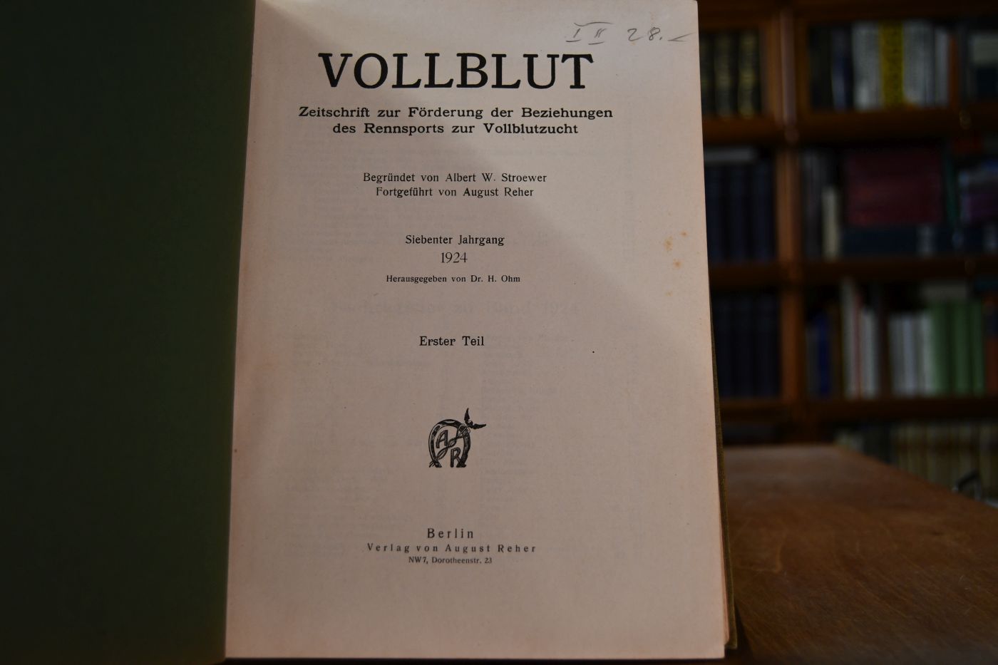 Vollblut. Zeitschrift zur Förderung der Beziehungen des Rennsports zur Vollblutzucht. 7. Jahrgang 1924. Bde. I+II.
