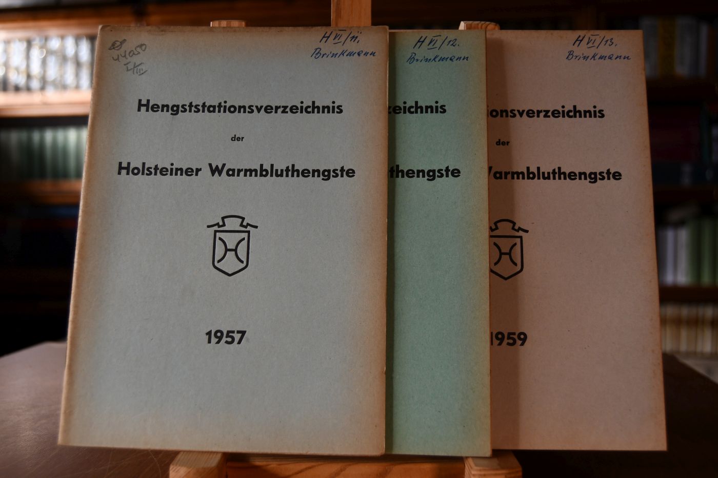 Hengststationsverzeichnis der Holsteiner Warmbluthengste 1957, 1958, 1959. 3 Hefte.