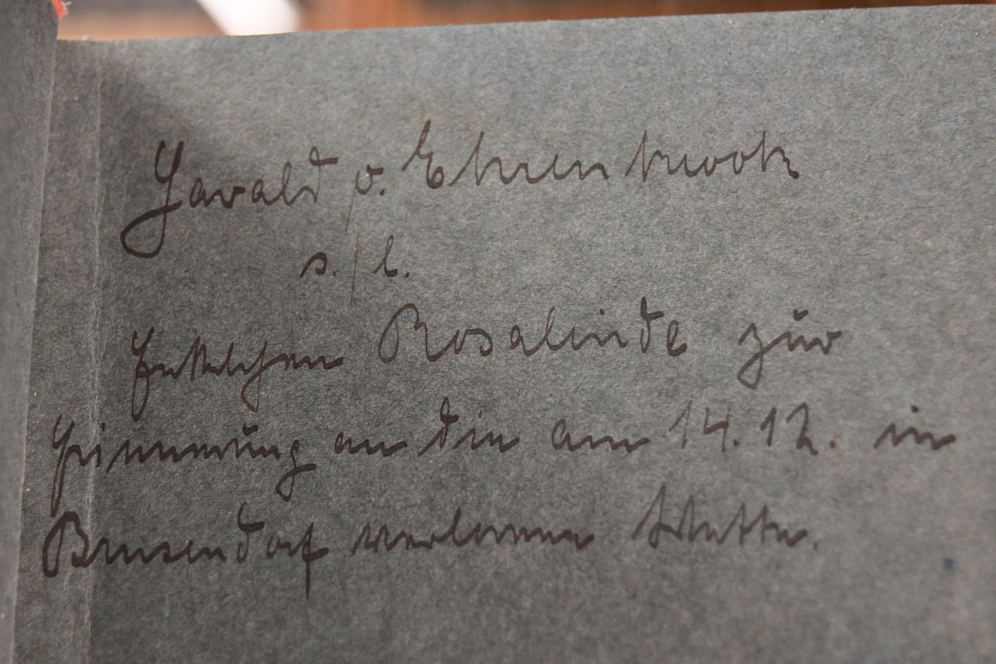 Beschreibung Einband berieben, bestoßen, ausgebleicht und mit Einrissen am Rücken. Schnitt fleckig. Handschriftliche Widmung von Harld v. Ehrenbrook an seine Enkelin Rosalinde auf dem fliegenden Vorsatz.