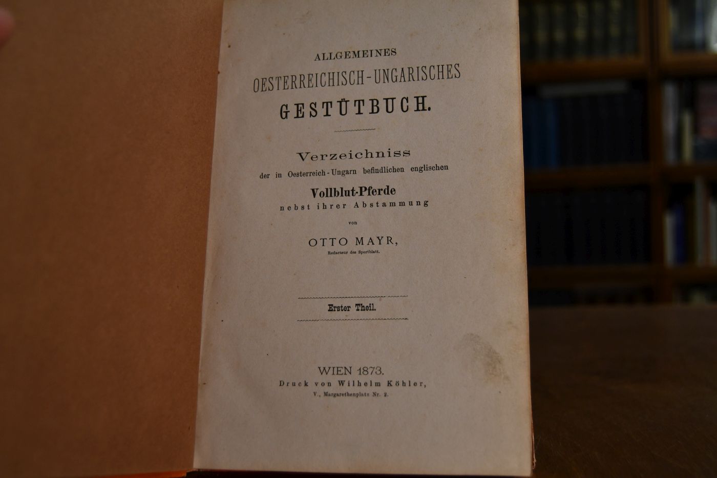 Allgemeines oesterreichisch-ungarisches Gestütbuch. Verzeichnisse der in Oesterreich-Ungarn befindlichen englischen Vollblut-Pferde nebst ihrer Abstammung. Erster Theil.