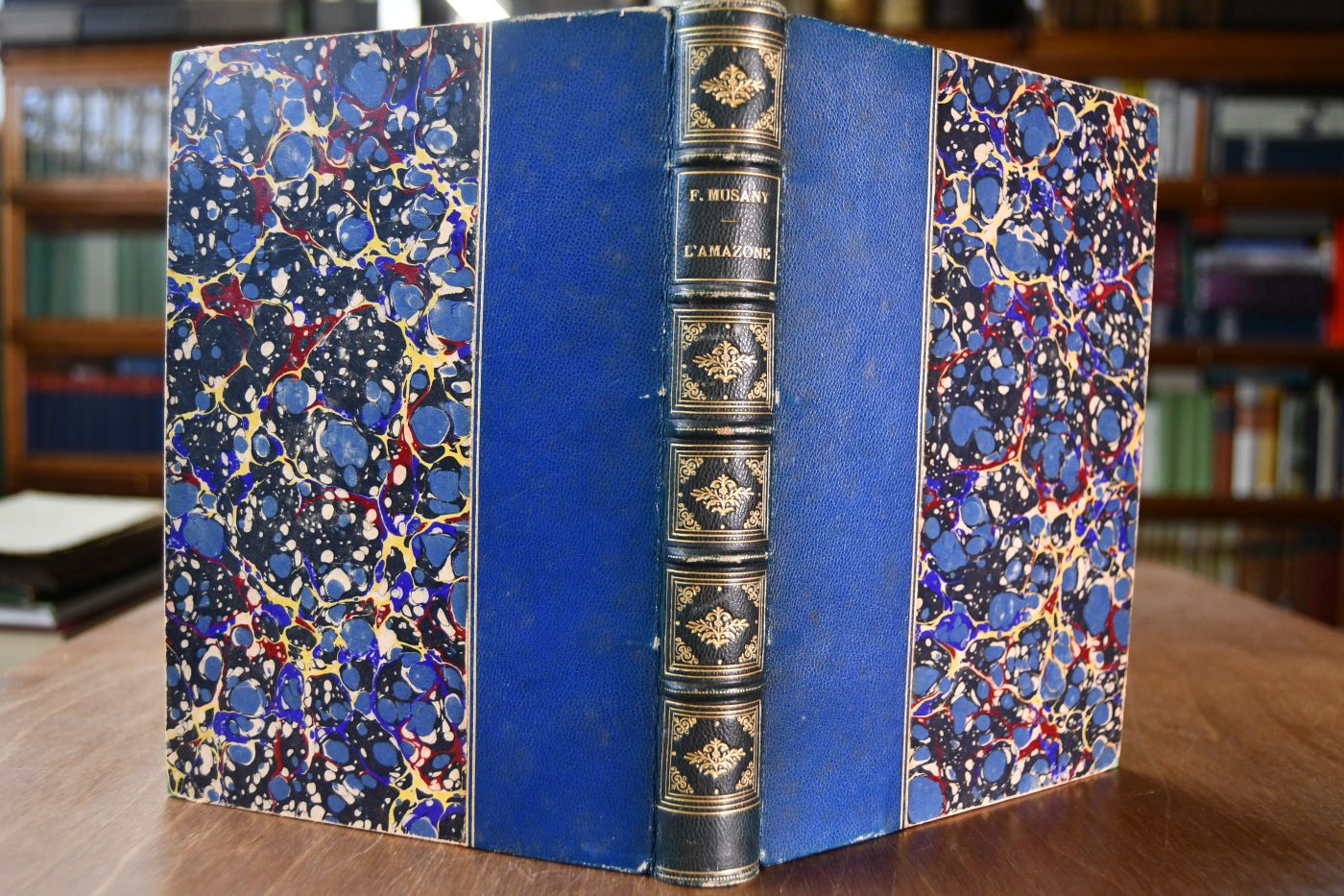 Format 21 x 15 cm, unbeschnittenes Halbleder mit 5 Bünden, Rückenvergoldung und Kopfgoldschnitt