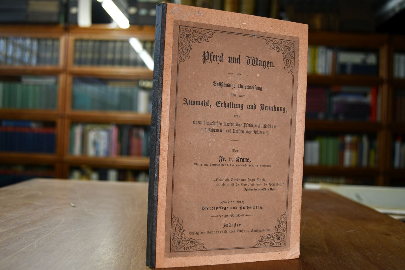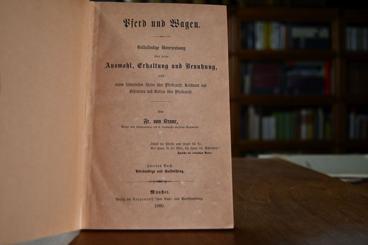 Vollständige Unterweisung über deren Auswahl, Erhaltung und Benutzung, nebst einem historischen Abriss über Pferdezucht, Reitkunst und Fahrwesen und Notizen zur Pferdezucht. Zweites Buch: Pferdepflege und Hufbeschlag.