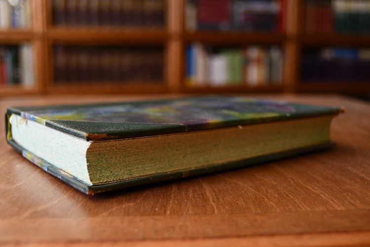 Format 21 x 16 cm, Halbleder mit 4 Bünden und umlaufenden Sprengschnitt