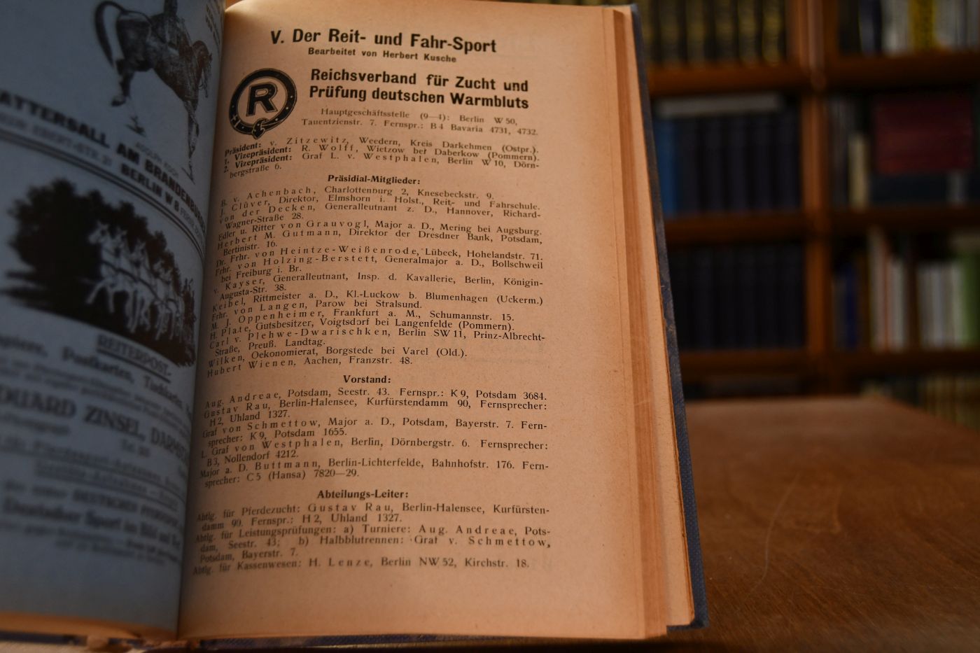 Reher`s Jahrbuch für Pferdesport, Vollblut- und Traberzucht in Deutschland unter Berücksichtigung des benachbarten Auslandes. 17. Jahrgang, 1929.