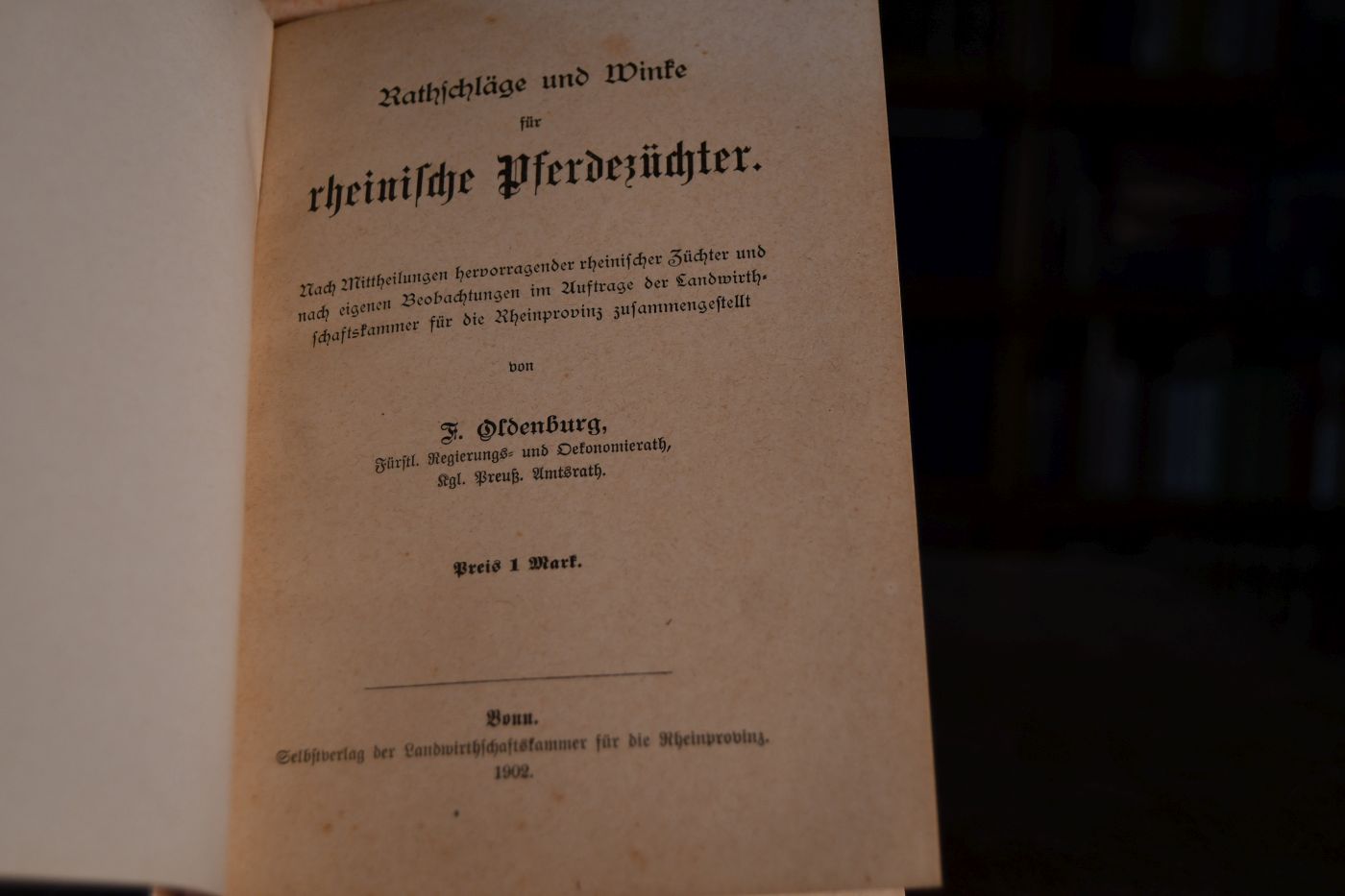 Rathschläge und Winke für rheinische Pferdezüchter. Nach Mittheilungen hervorragender rheinischer Züchter und nach eigenen Beobachtungen im Auftrage der Landwirtschaftskammer für die Rheinprovinz zusammengestellt.