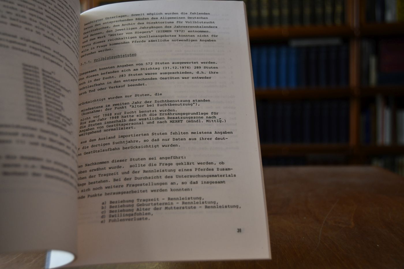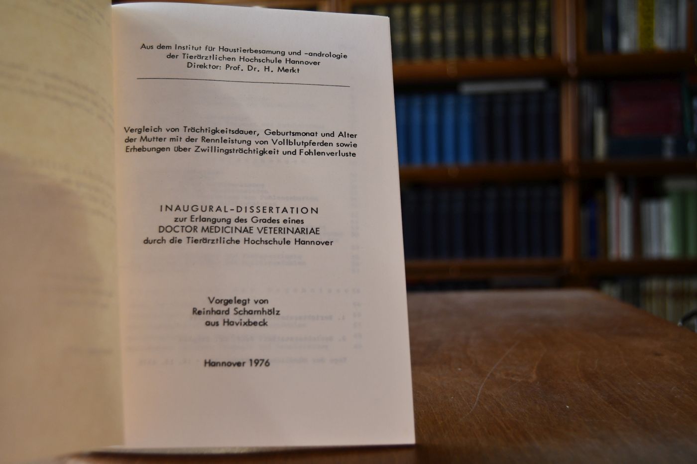 Vergleich von Trächtigkeitsdauer, Geburtsmonat und Alter der Mutter mit der Rennleistung von Vollblutpferden sowie Erhebungen über Zwillingsträchtigkeit und Fohlenverluste.