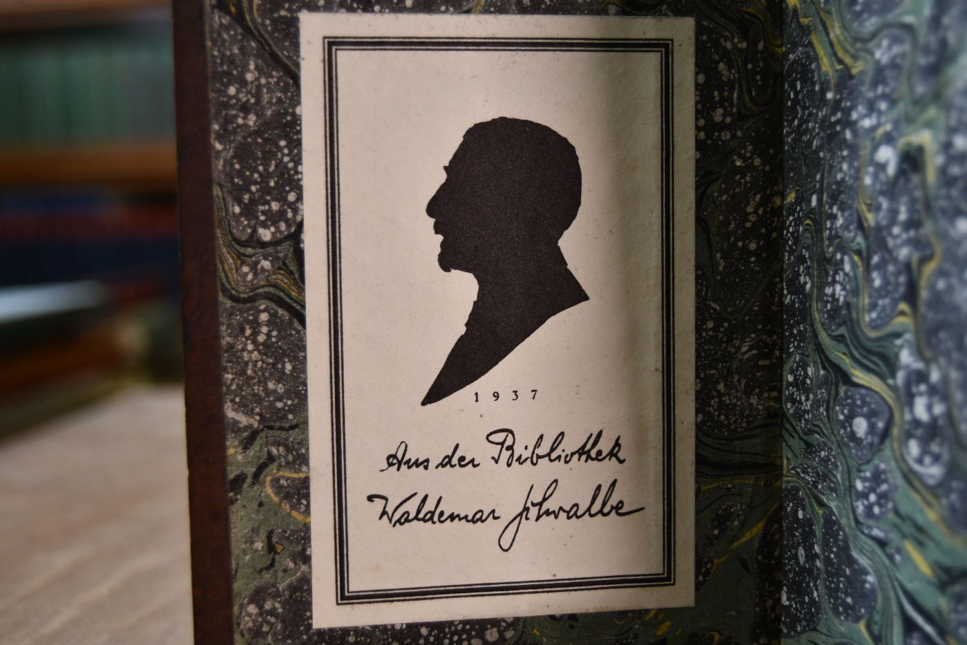 Beschreibung Einband berieben. Mit Porträtexlibris (Waldemar Schwabe, 1937) auf dem Innendeckel und einem Besitzerstempel (R. Gr. v. Altheim) auf der Titelrückseite. Durchgehend immer wieder fleckig. S. 45 mit kleiner Fehlstelle (außerhalb des Textes).