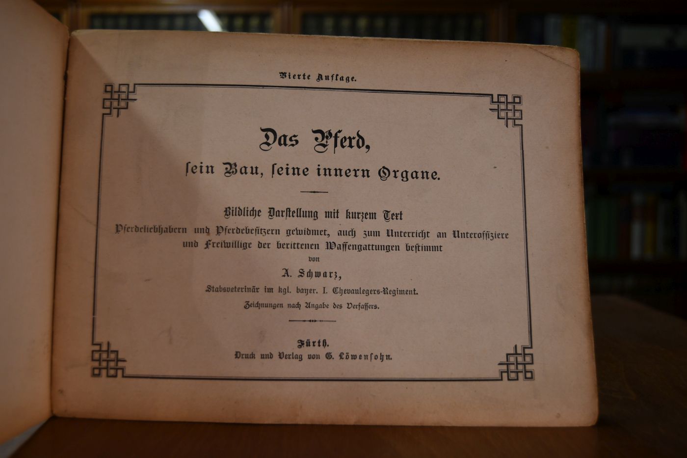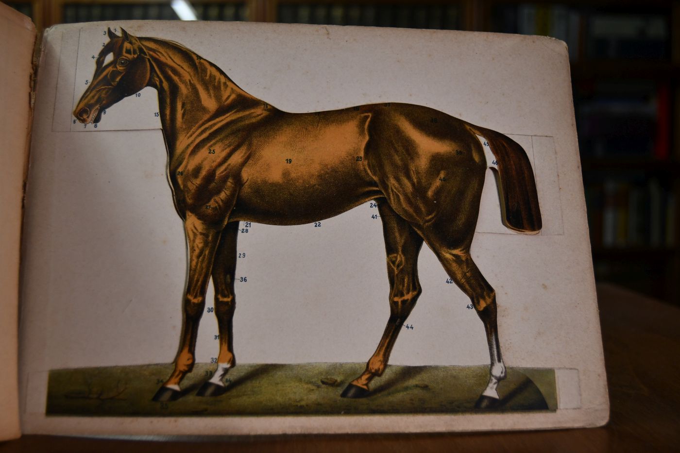 Das Pferd, sein Bau, seine inneren Organe. Bildliche Darstellung mit kurzem Text. Pferdeliebhabern und Pferdebesoitzern gewidmet, auch zum Unterricht an Unteroffiziere und Freiwillige der berittenen Waffengattungen bestimmt.