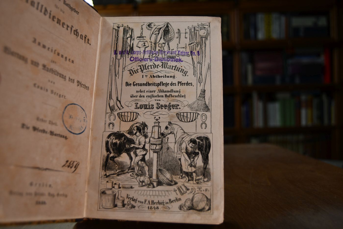 Die Pferde-Wartung. I. Abtheilung Die Gesundheitspflege des Pferdes, nebst einer Abhandlung über den englischen Hufbeschlag. II. Abtheilung Die Krankenpflege des Pferdes nebst einer Abhandlung über den Maulriemen, ein neues Zäumungsmittel zur besseren Erhaltung und Verwendung des Pferdes. Beigebunden 1. Louis Seeger Züchtung, Erziehung, Ausbildung des Pferdes im systematischen Zusammenange. Vorschläge zu einer rationellen Reorganisation der Gestüte, Berlin, F.A. Herbig, 1850, 104 S. 2. Louis Seeger, Herr baucher und seine Künste, Ein ernstes Wort an Deutschlands Reiter, Berlin, Friedr. Aug. Herbig, 1852, 96 S.