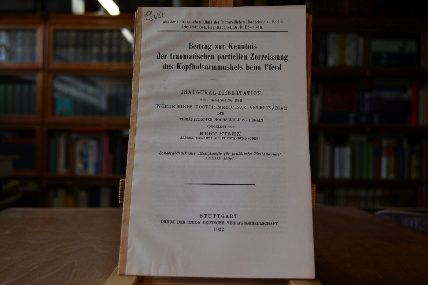 Dissertation der Tierärztlichen Hochschule Berlin. Sonderdruck aus: "Monatshefte für praktische Tierheilkunde" Band XXXIII.