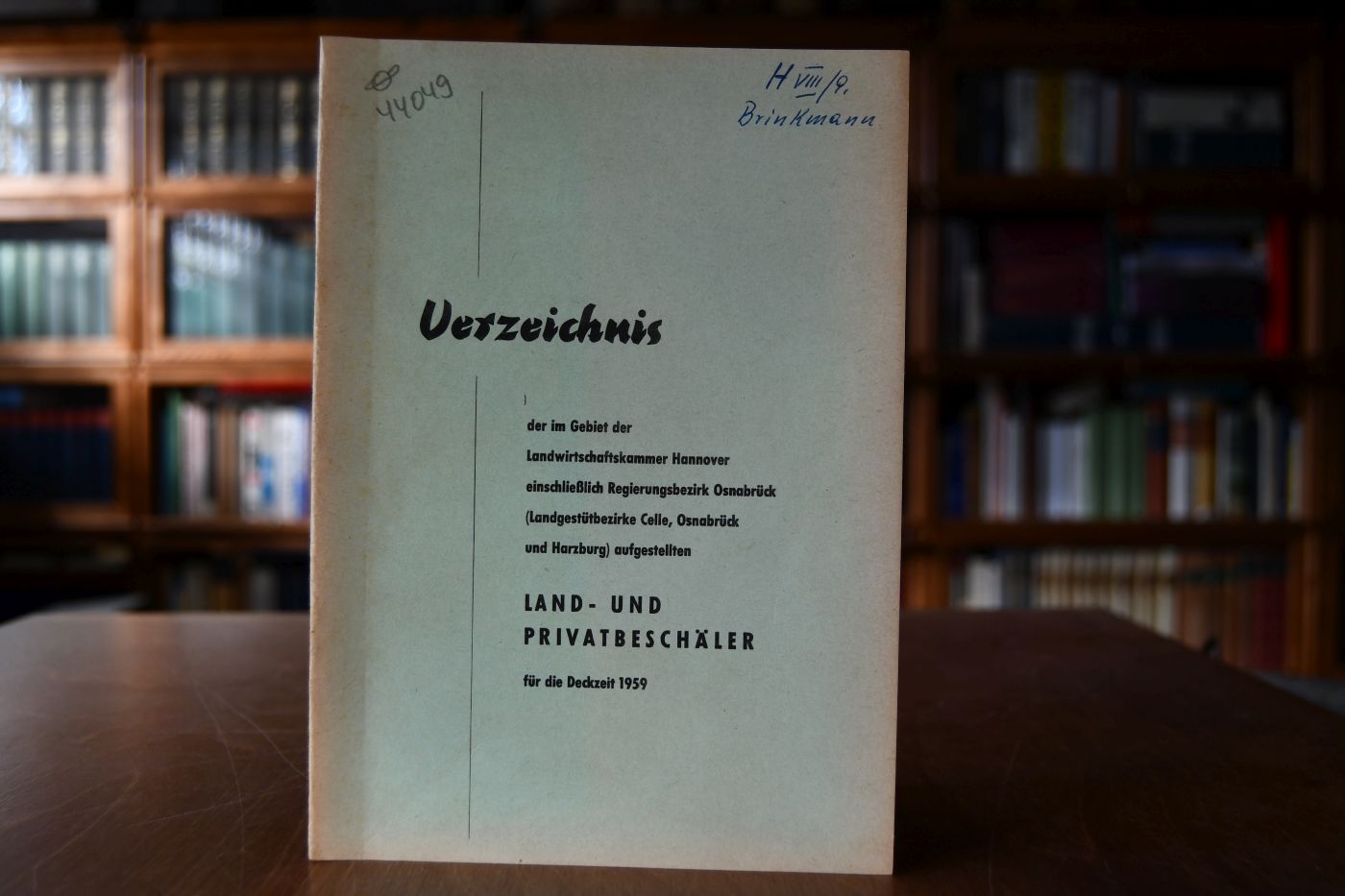 Verzeichnis der im Gebiet der Landwirtschaftskammer Hannover einschließlich Regierungsbezirk Osnabrück (Landgestüte Celle, Osnabrück und Harzburg) aufgestellten Land- und Privatbeschäler für die Deckzeit 1959