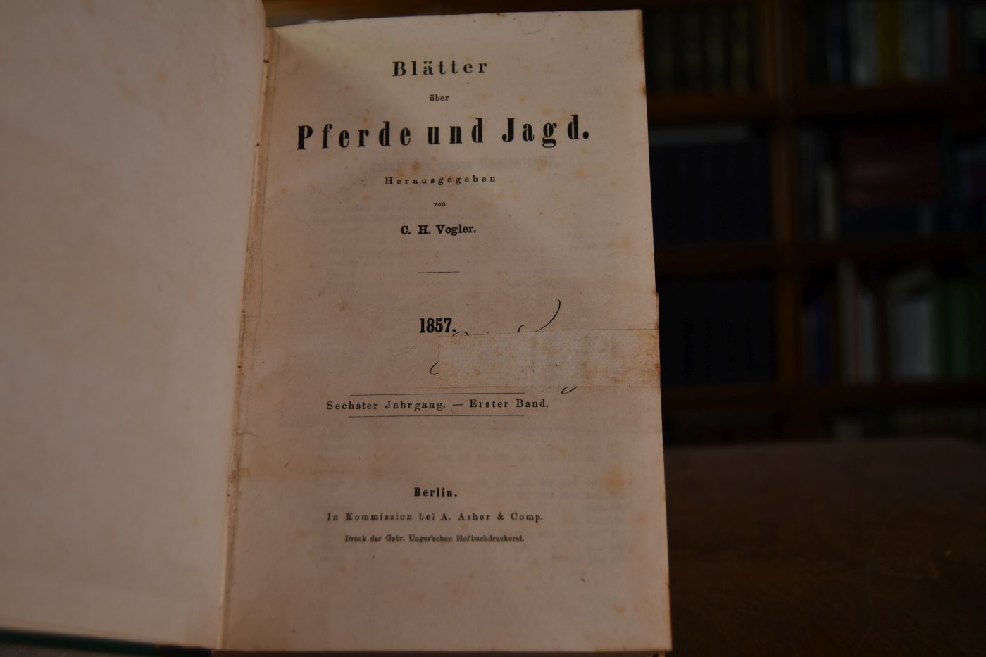 Blätter über Pferde und Jagd. 6. Jahrgang, Bde. 1+2 in einem Band.