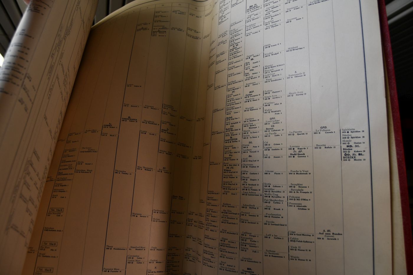 Beschreibung Einband berieben und bestoßen. Einige Seiten mit etwas Verlust (ohne Textverlust). Enthält: Alphabetisches Verzeichnis aller in den Tafeln angeführten Pferde, Sieger in bedeutenden Rennen, Mütterliche Linien, Stammlinien der polnischen hochveredelten Halbblutpferde u. einiger Pferde amerikanischer Abstammung, Männliche Linien der bedeutendsten Vaterpferde. Contents: Alphabetical Index of all the horses inserted in the Tables,Winners of important races, Female lineages, Polish half bred racing horses and some horses of American breed, MAle lineages of famous sires. Table des Matieres: Index alphabetique de tous les chevaux inclus dans le Tables, Vainqueurs des courses importantes, Lignees femelles, Lignees de chevaux de courses pres du sang anglais, nes en Pologne, et de certains chevaux d`origine americaine, Lignees males des etalons les plus remarquables. Spis Rzeczy: Skorowidz alfabetyczny wszystkich wymienionych w tablicach koni, Zwyciescy najwazniejszych gonitw Linje zenskie, Konie polskie wysokiej polkrwi angielskiej oraz niektore konie pochodzenia amerykanskiego, Linje meskie najwybitniejszych ogierow,