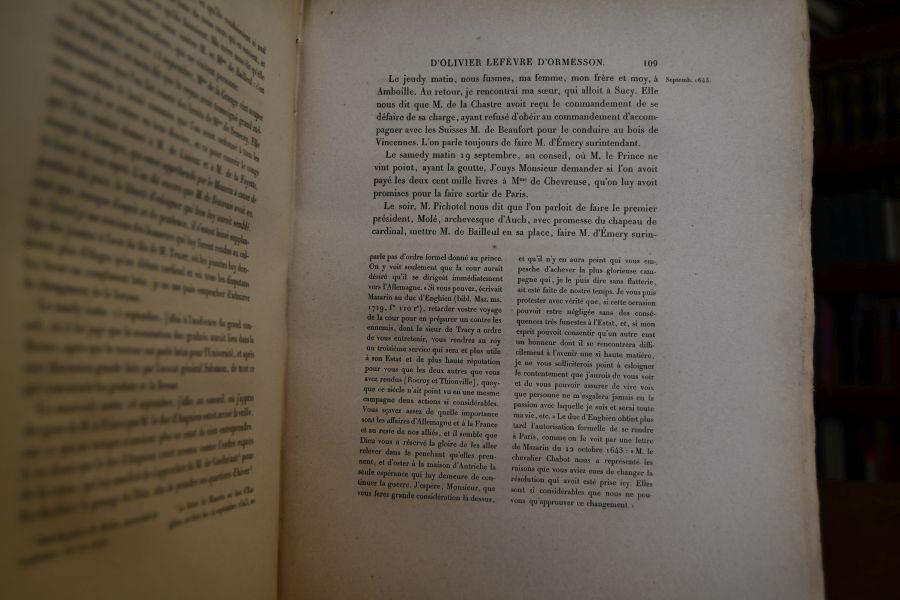 Journal D`Olivier Lefevre D`Ormesson ex extraits des Memoires D`Andre Levevre D`Ormesson. Tome premier 1643-1650 + second 1661-1672