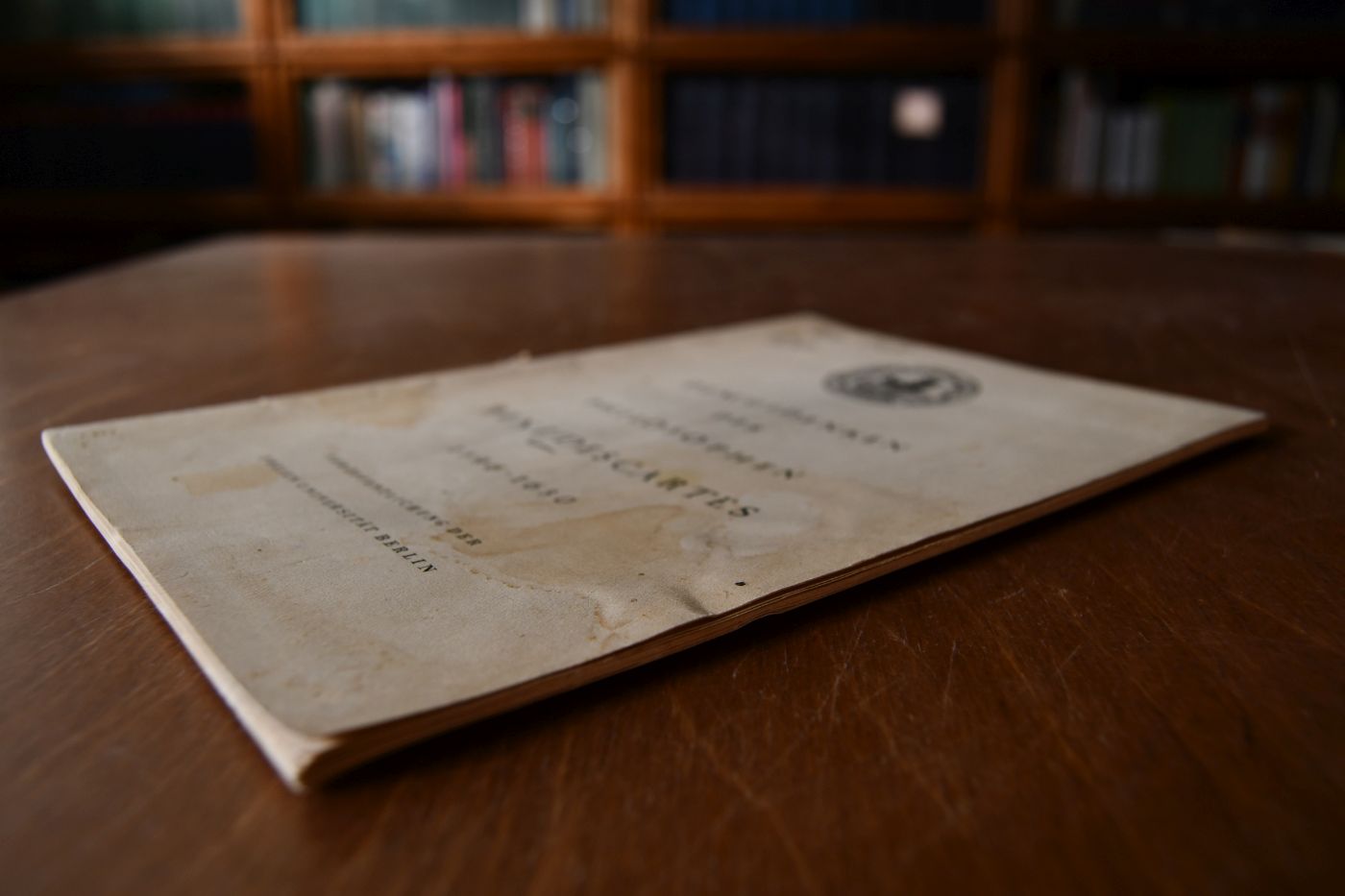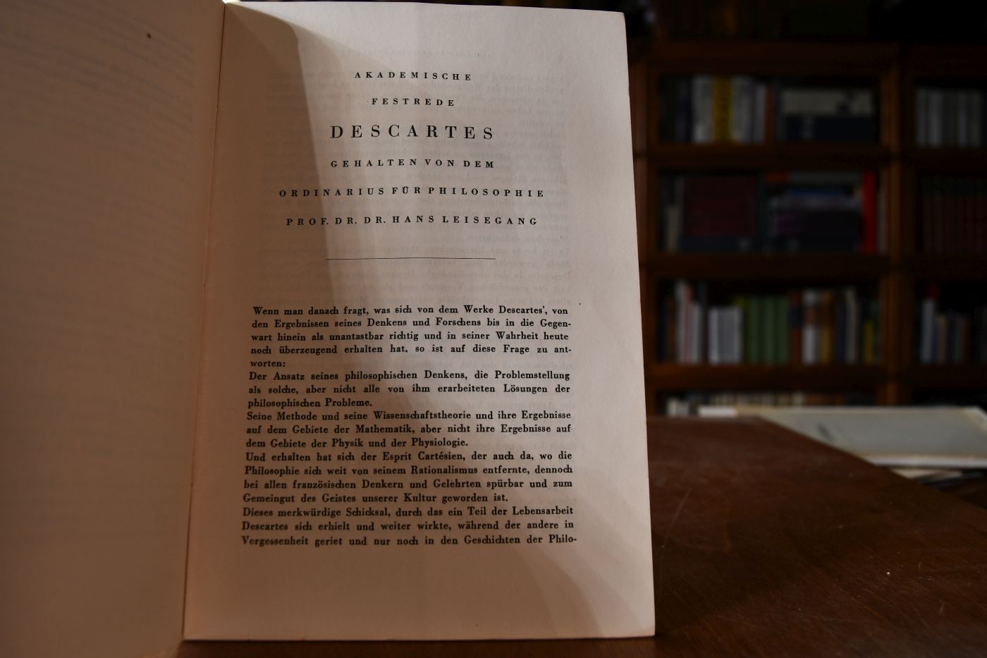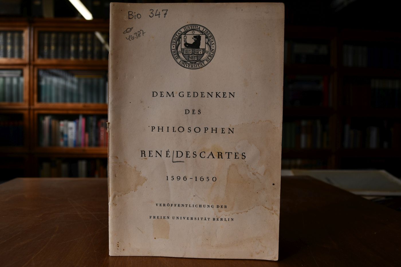 Gedenkfeier anlässlich des dreihundertjährigen Todestages des Philosophen Rene Descartes ( Deckeltitel Dem Gedenken des Philosophen Rene Descartes 1596 - 1650 ). Veranstaltet von der Freien Universität Berlin am 11. Februar 1950.
