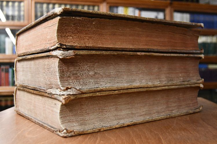 Format 39 x 27 cm, Leder der Zeit auf 6 Bünden mit 2 Rückenschilden, Filetenvergoldung und umlaufendem Sprengschnitt