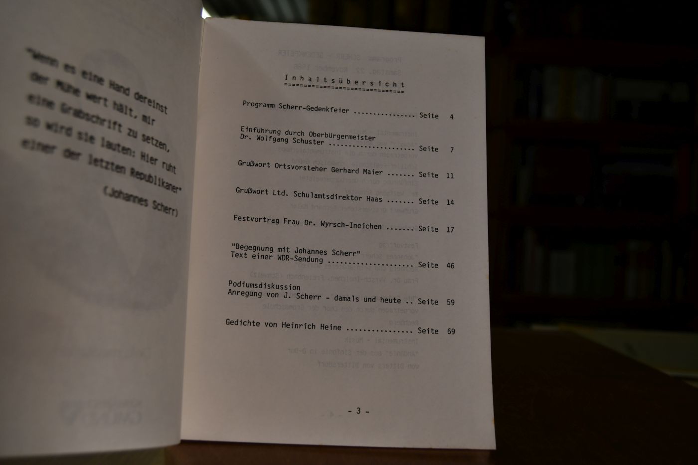 Gedenkfeier Johannes Scherr (1817-1886). Samstag, 22. November 1986 Gemeindehalle Rechberg. Dokumentation.