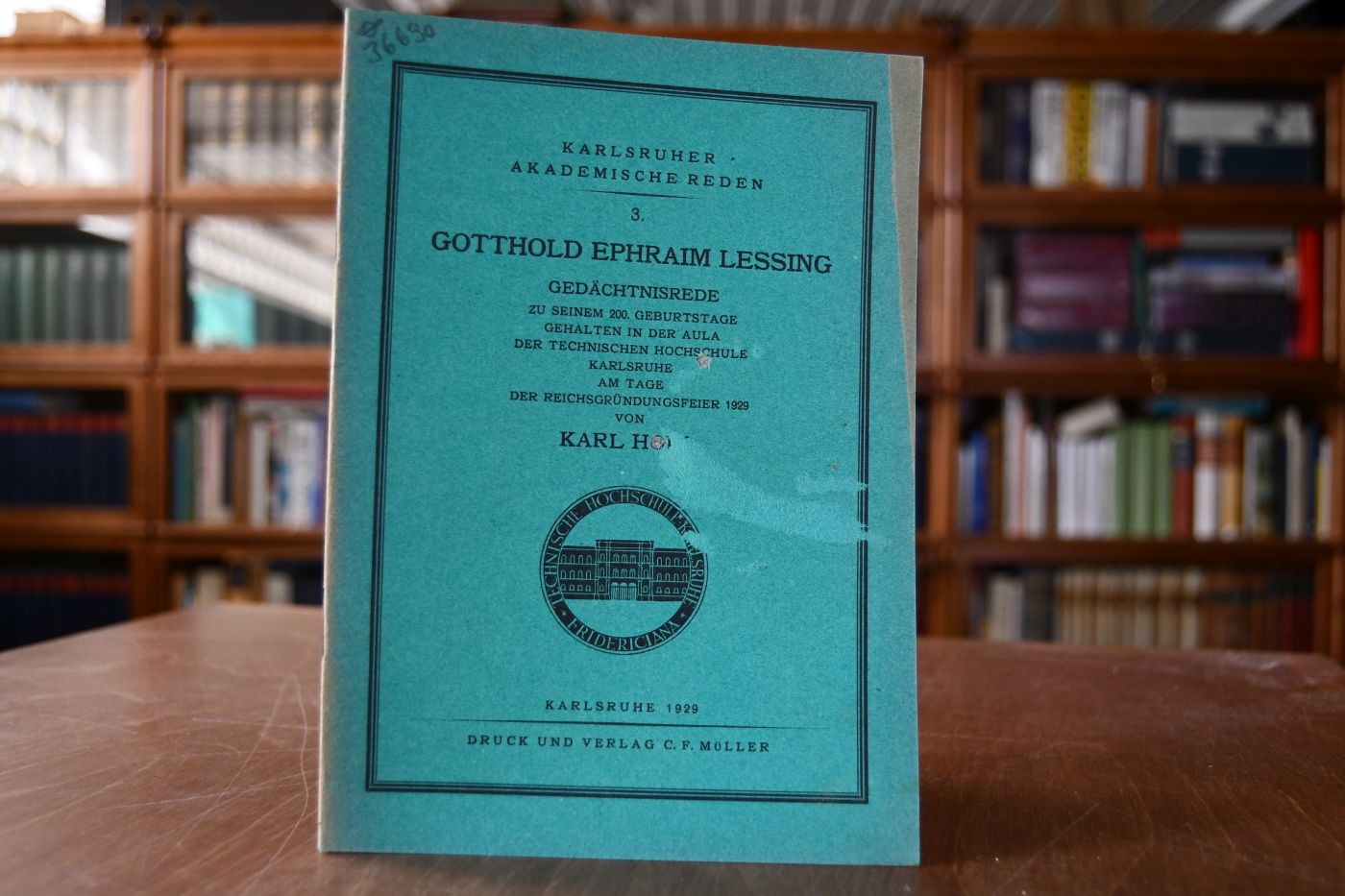 Gotthold Ephraim Lessing. Gedächtnisrede zu seinem 200. Geburtstage gehalten in der Aula der Technischen Hochschule Karlsruhe am Tage der Reichsgründungsfeier 1929.