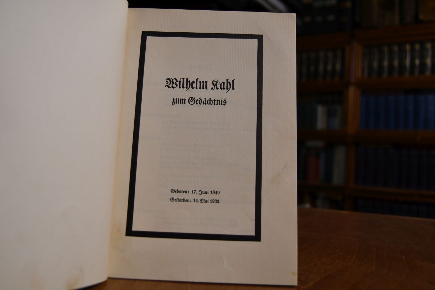 Wilhelm Kahl zum Gedächtnis. Geboren 17. Juni 1849. Gestorben 14. Main 1932.