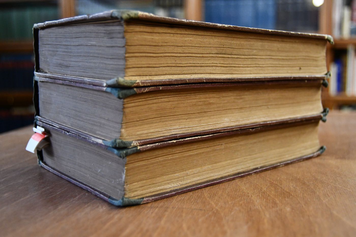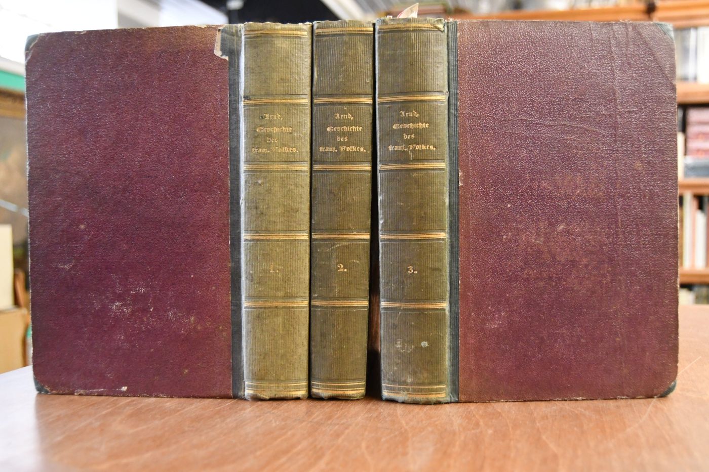 Beschreibung Einband berieben und bestoßen. Wappenexlibris (mit ausradiertem Namen) auf Innendeckel. Bd. 2+3 durchgehend fleckig. Vorderer Falz von Bd. 1 mit Textilklebeband verstärkt.
