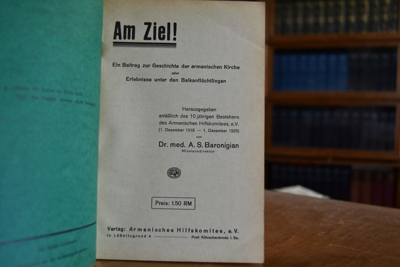 Am Ziel!. Ein Beitrag zur Geschichte der armenischen Kirche oder Erlebnisse unter der Balkanflüchtlingen. Herausgegeben anläßlich des 10jährigen Bestehens des Armenischen Hilfskomitees, e.V. (1. Dezember 1918 - 1. Dezember 1928).