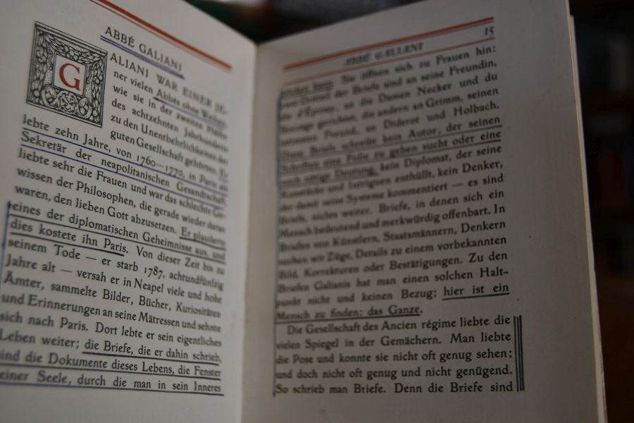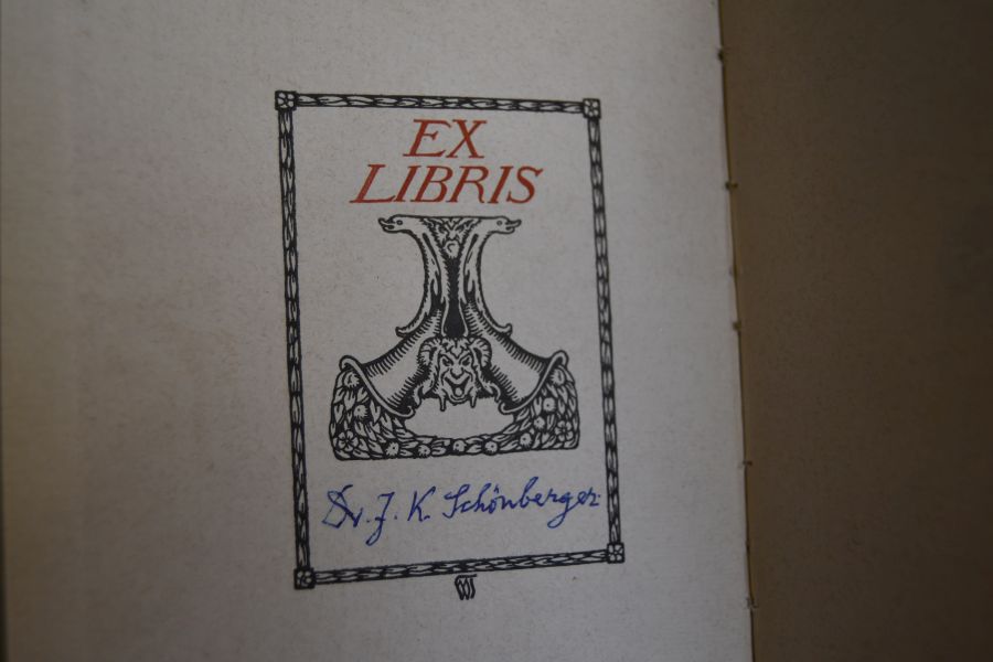 Beschreibung Einband berieben und bestoßen. Am Rücken zwei Papierverstärkungen. Handschriftlicher Besitzereintrag (Dr. J.K. Schönberger, der Vater von Otto Schönberger) auf Innendeckel. Innen durchgehend mit Farbstiftanstreichungen und -marginalien wohl von der Hand von J.K. Schönberger.