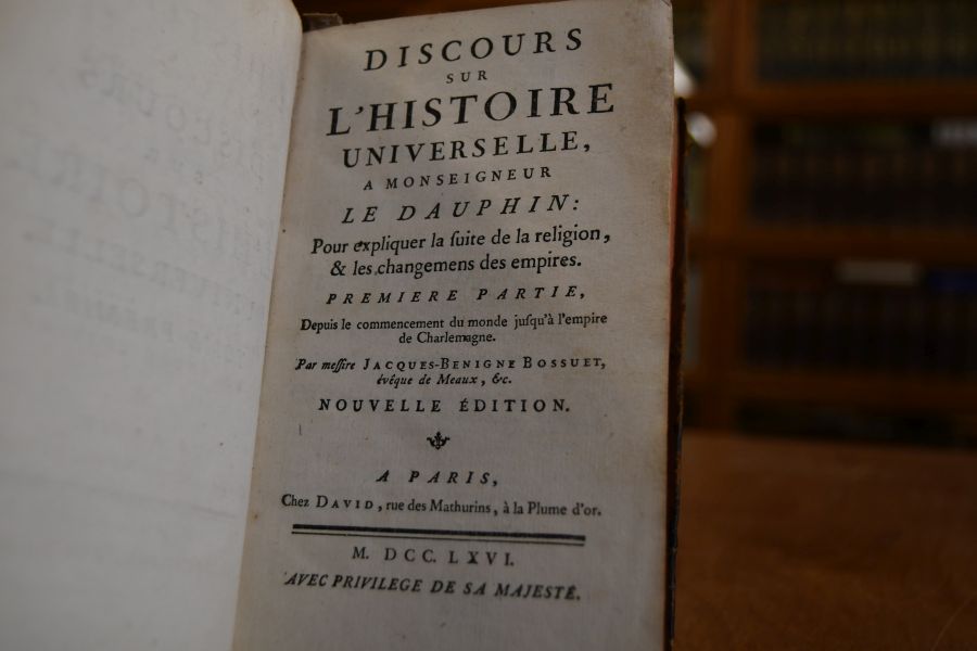 Discours sur l`histoire universelle, à monseigneur Le Dauphin Pour expliquer la fuite des religion & les changements des Empires. Première partie (apart). Depuis le commencement du monde jusqu`à l`Empire de Charlemagne.