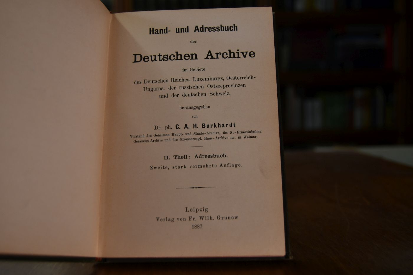 Hand-und Adressbuch der Deutschen Archive im Gebiete des Deutschen Reiches, Luxemburgs, Oesterreich-Ungarns, der russichen Ostseeprovinzen und der deutschen Schweiz. II. Theil Adressbuch (apart).