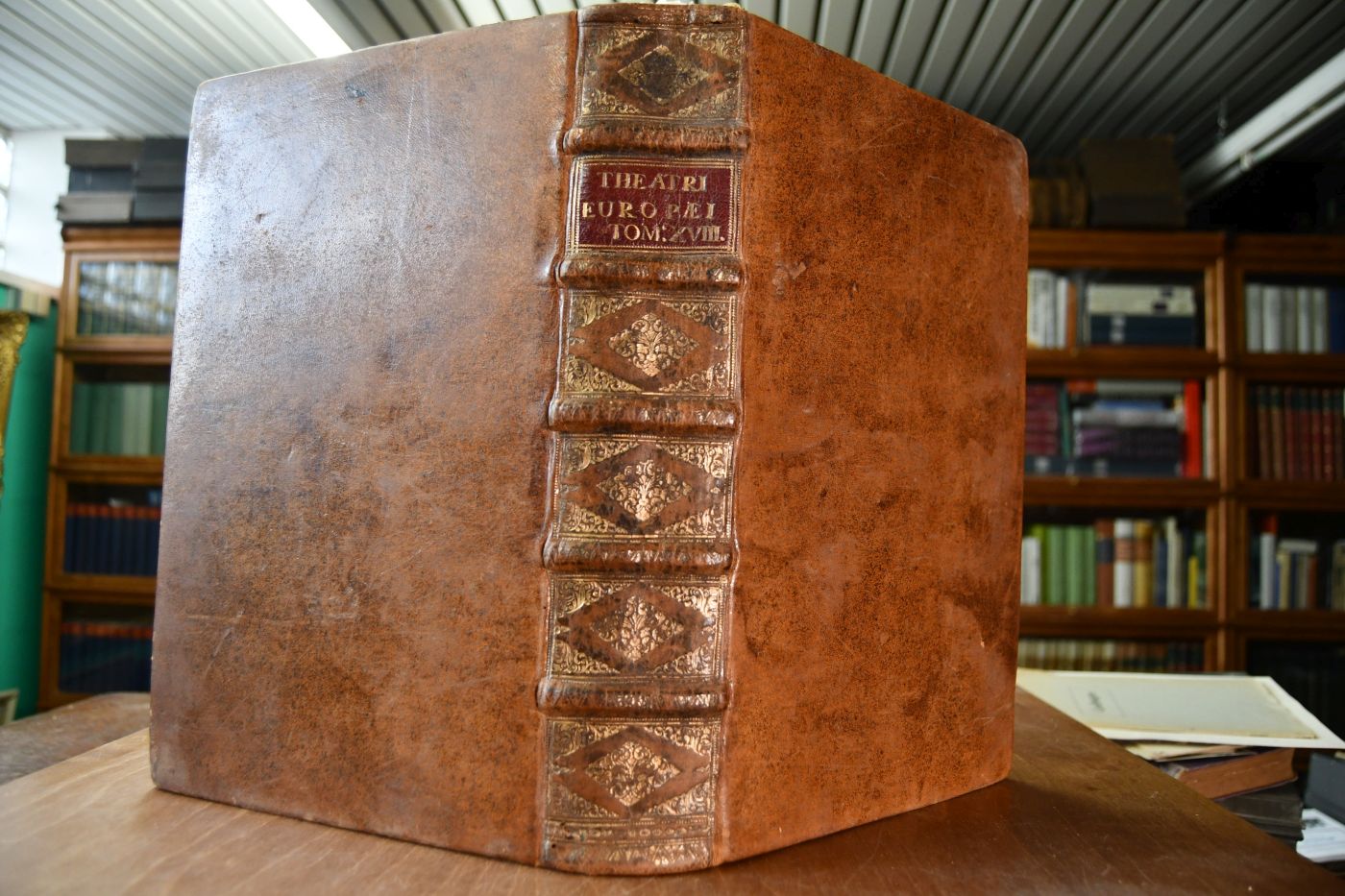 35 x 23 cm, Leder der Zeit auf 5 Bünden mit Rückenschild und Rückenvergoldung