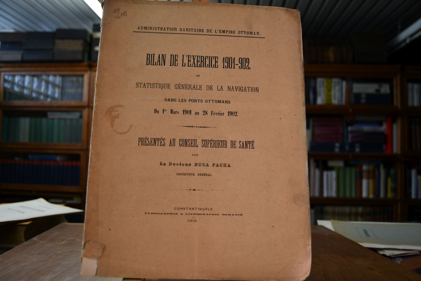 Bilan de l`exercice 1901-02 et statistique generale de la navigation dans les ports Ottomans du 1er Mars 1901 au 28 Fevrier 1902. Presentes au Conseil Superieur de Sante par Le Docteur Duca Pacha, Inspecteur General.