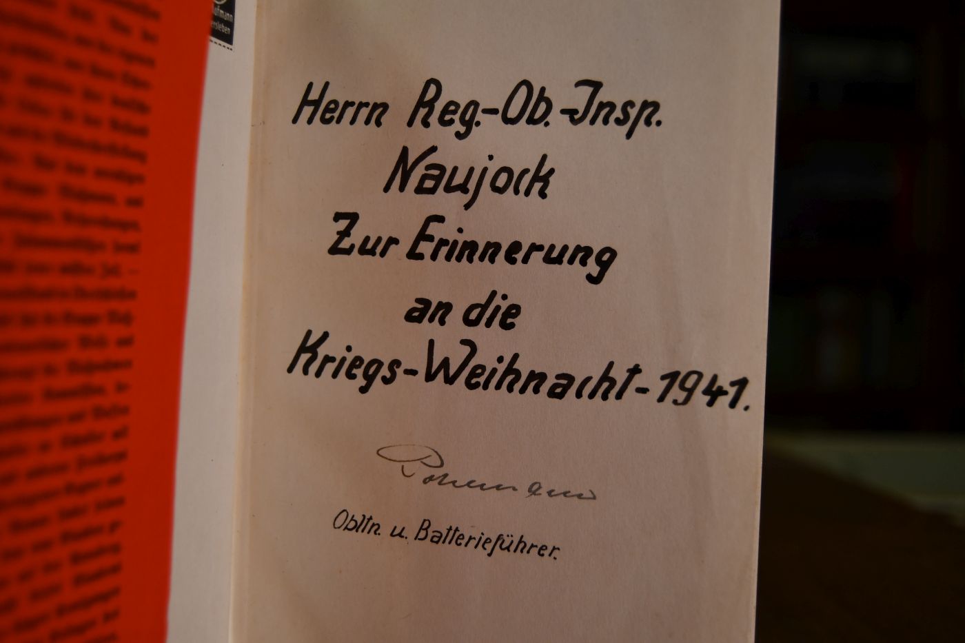 Beschreibung Schutzumschlag berieben, bestoßen, mit Einrissen und etwas Verlust auf der Vorderseite. Einband und Schnitt fleckig. Militärische Widmung (Herrn Reg. Ob. Insp. Naujok zur Erinnerung an die Kriegs-Weihnacht) von 1941 auf dem fliegenden Vorsatz.