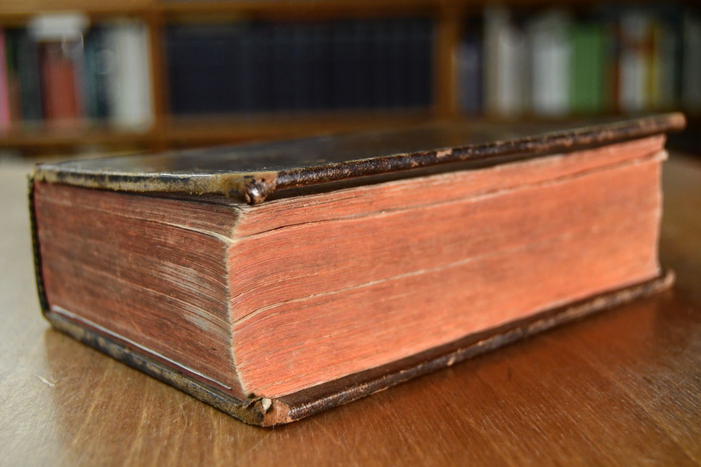 Format 18 x 12 cm, Leder auf 4 Bünden mit umlaufenden Rotschnitt