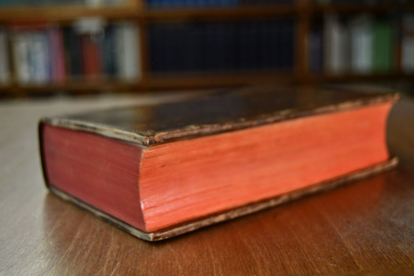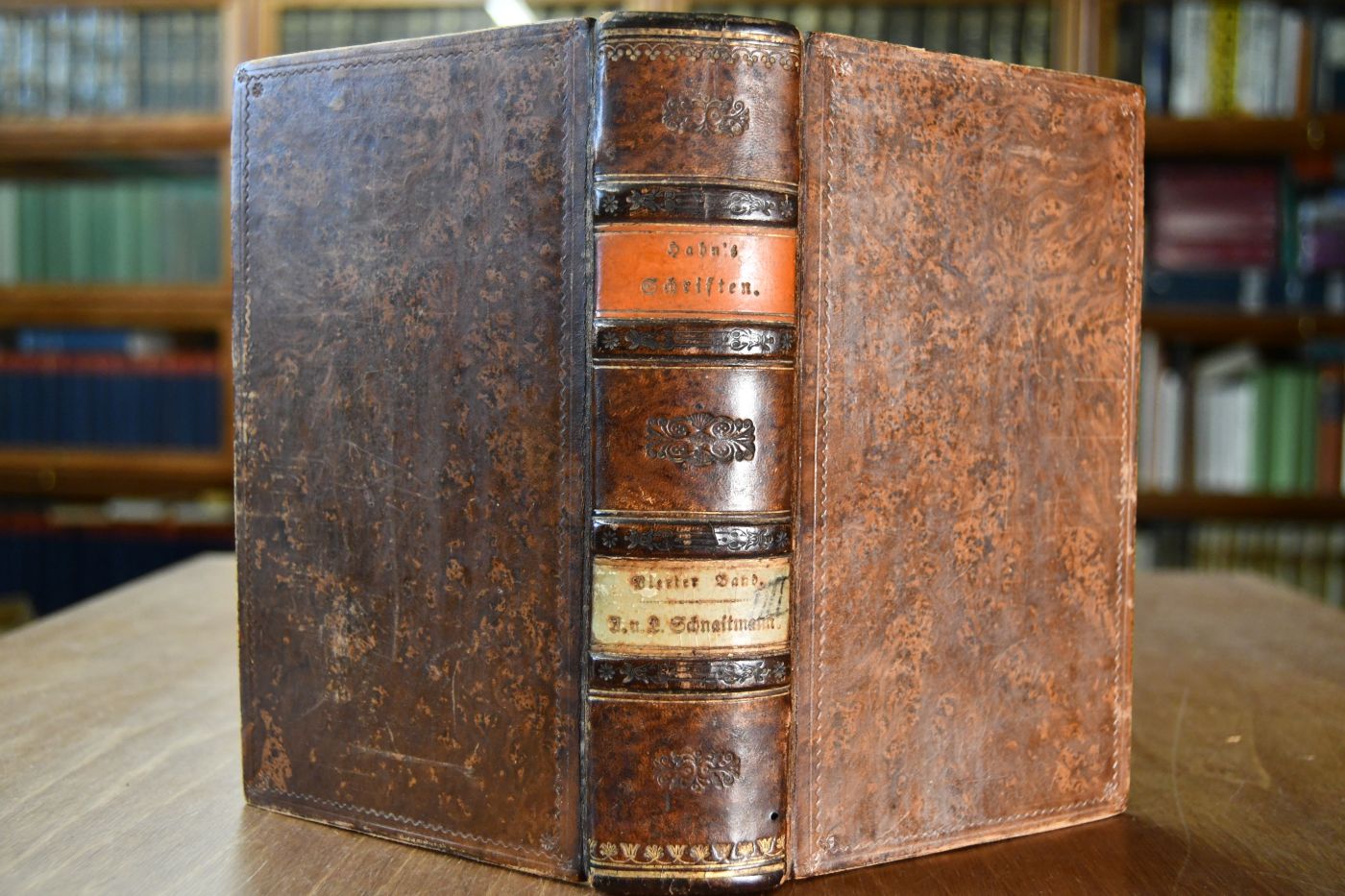 Format 19 x 12 cm, Leder mit 2 Rückenschilden und umlaufenden Rotschnitt