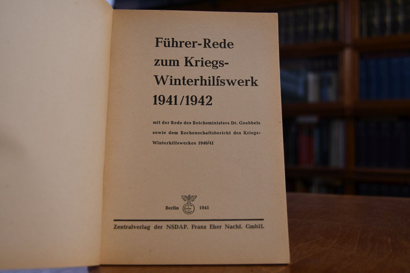 Führer-Rede zum Kriegs-Winterhilfswerk 1941/42 mit der Rede des Reichsministers Dr. Goebbels sowie dem Rechenschaftsbericht des Kriegs-Winterhilfswerkes 1940/41.